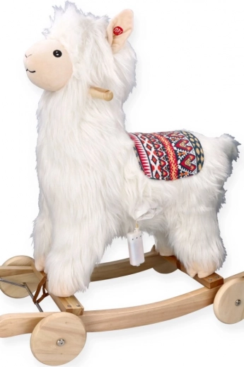 Njihajuća alpaka s kotačićima za djecu 3+. Nosivost 50 kg, težina 3,5 kg, CE certifikacija. Zabava i razvoj ravnoteže u jednoj preslatkoj igrački za njihanje.