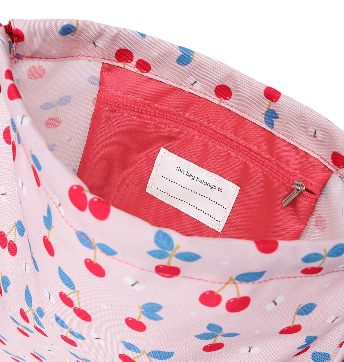 - Dizajn: motiv trešanja; mogućnost usklađivanja s ruksakom, toaletnom torbicom, bocom i kutijom za užinu u istom stilu
