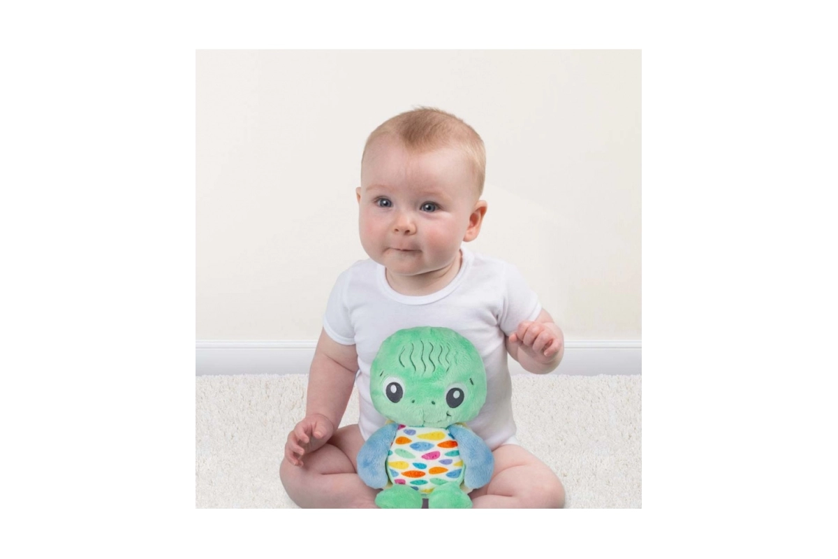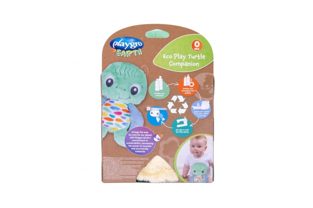 Preslatka plišana prijateljica kornjačica iz linije Eco Play brenda Playgro razveselit će svaku bebu od 3 mjeseca. Izrađena je od recikliranih PET boca, pa je ne samo mekana i sigurna, već i prijateljska prema okolišu. Zahvaljujući posebno mekom materijalu, živopisnim uzorcima i prijateljskom dizajnu potiče vizualnu percepciju, razvoj osjetila i pruža osjećaj smirenosti i sigurnosti tijekom maženja i spavanja.
