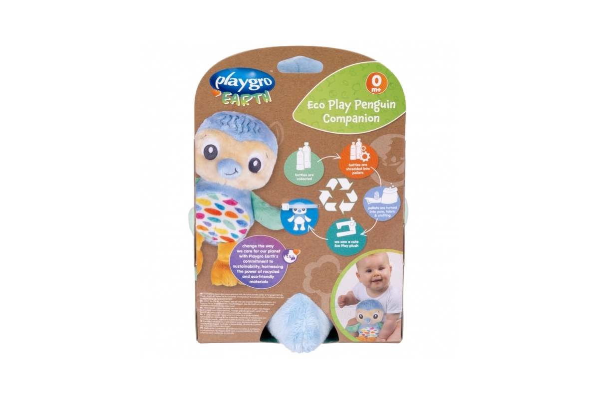 Slatki pingvinčić brenda Playgro ekološka je igračka izrađena od recikliranih plastičnih boca, prikladna za bebe od 3 mjeseca. Nudi iznimno mekani materijal za osjećaj sigurnosti, jasne uzorke za stimulaciju vida i prijateljska je prema planetu – idealan suputnik za igru i mirno uspavljivanje.