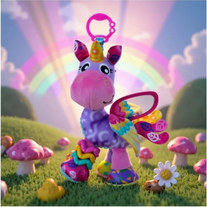 Tražite osjetilnu igračku koja će vašu bebu osvojiti na prvi dodir i pogled? Jednorog Stella spaja meke plišane materijale, šuškava krila, zveckajuće prstene i sigurno zrcalce na krilu. Sjajni rog, srebrno krilo i slojeviti rep potiču znatiželjno istraživanje i finu motoriku.