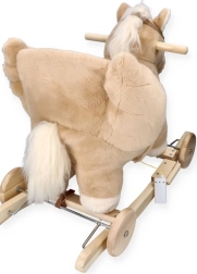 Klip-klap konjić Pegas bež sa sjedalom spaja čar tradicionalne igračke s praktičnim značajkama za moderan dom. Dijete može koristiti konjića na klasičnim drvenim skijama za ljuljanje ili, zahvaljujući kotačićima, prijeći na vožnju po podu. Sjedalo je na visini približno 35 cm pri uporabi kotačića i 31 cm pri ljuljanju na skijama, što je idealno za predškolsku djecu.