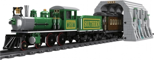 Model se ističe autentičnim izgledom: zeleno-crno izvedenje, pokretni kotači i realistični detalji. Lokomotiva je opremljena električnim pogonom i akumulatorom 3,7 V Li (uključen), upravljač zahtijeva 2× AAA (nisu uključene). Zahvaljujući 1212 dijelova set razvija finu motoriku, logiku i prostornu maštu te zabavlja satima.
