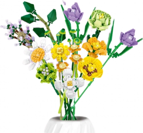 Sastavite vlastiti dekorativni buket od kockica s bogatim bojama i detaljima. Ovaj kreativni set nudi 925 dijelova za sastavljanje 12 vrsta cvjetova uz mogućnost podešavanja duljine stabljika i slobodnog aranžiranja. Odličan kao originalan poklon, elegantna dekoracija doma ili ureda te opuštajuća zabava za djecu od 6 godina i odrasle.