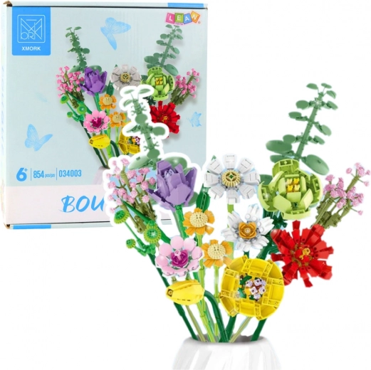 Otkrijte radost stvaranja s dekorativnim buketom koji ćete lako složiti od 854 dijela. Šarena kompozicija uključuje do 12 različitih cvjetova – od sitnih pupoljaka do raskošnih cvjetova – i ukrasit će svaki interijer. Zahvaljujući kompatibilnosti s drugim setovima, buket možete po želji proširivati i prilagođavati.