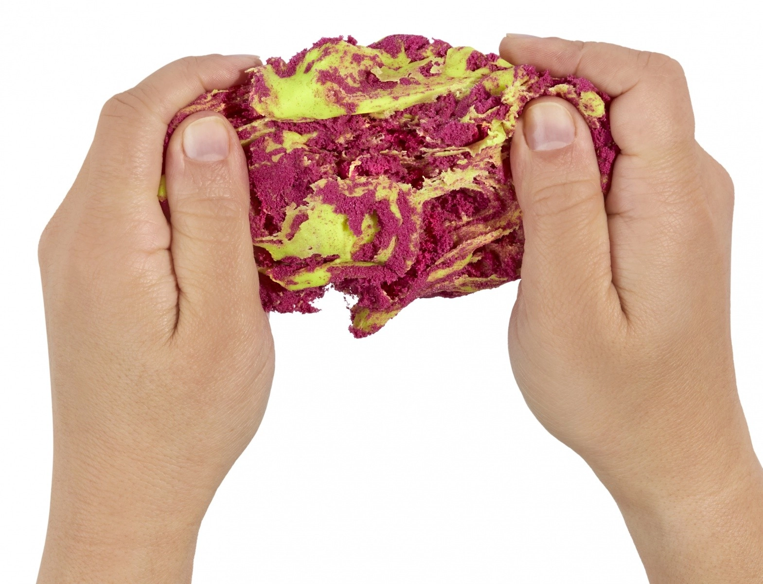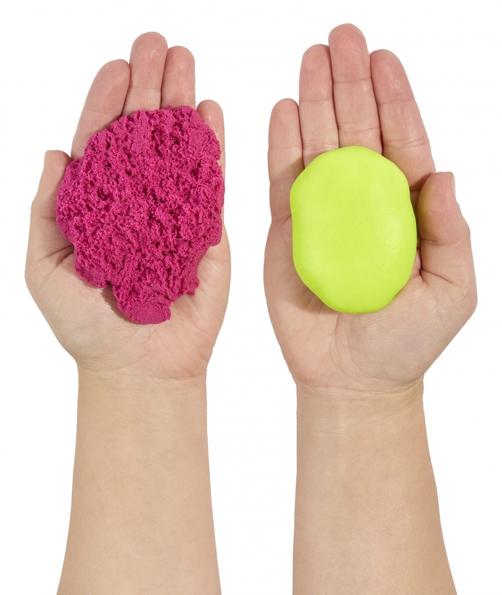 Ovaj pametni kreativni set donosi dvije različite teksture za maksimalnu zabavu – finu, glatku masu i strukturirani, oblikovni pijesak. Zahvaljujući posebnom sastavu masa ne presušuje, pa se djeca mogu iznova i iznova igrati. Limeta i ružičasta boja potiču miješanje oblika, uzoraka i maštovito modeliranje.