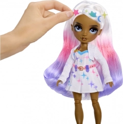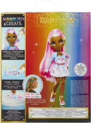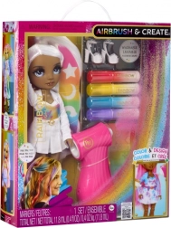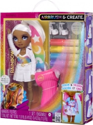 Lutka RAINBOW HIGH Air Brush osmišljena je kao “prazno platno” koje djeca mogu prilagoditi prema svojim zamislima. Set uključuje airbrush alat za flomastere, četiri periva kolor flomastera (crvena, žuta, plava, ljubičasta), šablone za lako ukrašavanje i kompletno bijelo odijelo uključujući cipele. Boje se mogu nanositi raspršivačem ili izravno flomasterom za precizne detalje – na kosu, haljinu i dodatke.