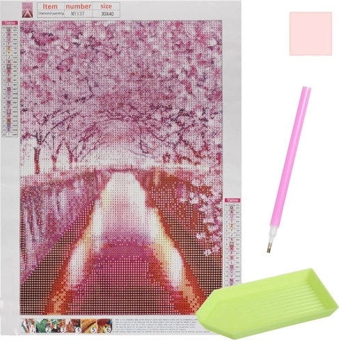 Otkrijte opuštajući svijet dijamantnog slikanja i izradite vlastito umjetničko djelo s motivom romantične aleje sakura. Set sadrži sve potrebno i idealan je za početnike i napredne. Zahvaljujući kodiranom platnu rad je jednostavan i precizan, a gotova slika blista nježnim, sjajnim odsjajem. Sjajan način za opuštanje, razvijanje kreativnosti i dobivanje originalne dekoracije interijera.