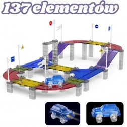 Otkrijte kreativni svijet konstrukcijske staze WOOPIE, koja potiče maštu, kreativnost i logičko razmišljanje. Magnetski dijelovi se brzo i čvrsto spajaju, pa djeca od 3 godine mogu sve složiti bez alata. Šareni prozirni elementi u kombinaciji s LED autićem stvaraju privlačan svjetlosni doživljaj.