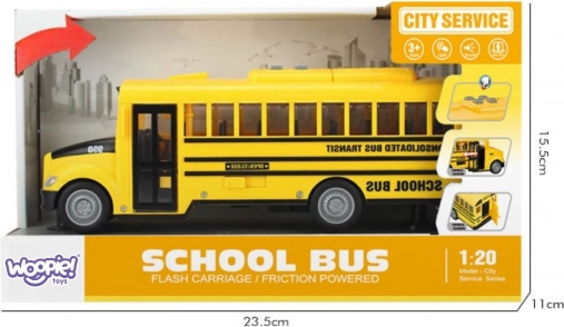 Uvedite svoje dijete u svijet gradske prijevoza s realističnim školskim autobusom WOOPIE. Nudi svjetlosne i zvučne efekte, otvarajuća prednja i stražnja vrata te mehanizam na inerciju za zabavu bez kraja. Četiri gumena kotača osiguravaju glatku vožnju, a izdržljiva izrada od čvrste plastike podnosi i intenzivnu igru. Izvrsna igračka za razvoj mašte, logike i motorike djece od 3 godine naviše.