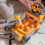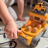 Ova interaktivna žuta građevinska kamionska igračka nudi sate aktivne zabave. Dovoljno je ubaciti „kovanicu“, uzeti u ruku meki čekić i pogađati izranjajuće figurice/„auta“ za što viši rezultat na zaslonu. Igra razvija finu motoriku, koordinaciju oko–ruka, opažanje i brzinu reakcija.
