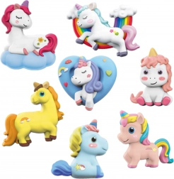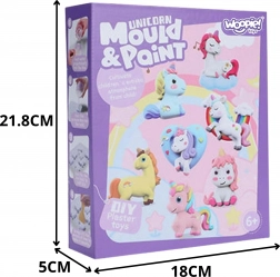 Uz ovaj set djeca će lako izliti svoje vlastite jednoroge, ostaviti ih da se osuše, a zatim ih obojiti prema mašti. Različiti oblici i poze figurica omogućuju stvaranje jedinstvene kolekcije koja će ukrasiti dječju sobu. Kompletna oprema osigurava da sve mogu izvesti ugodno i sigurno kod kuće.