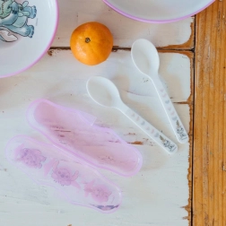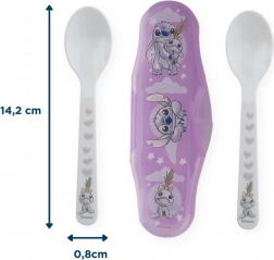 Praktičan set dviju dječjih žlica s etuijem s motivom Lilo i Stitch idealan je za putovanja i vrtić. Ergonomski oblik savršeno se prilagođava malim ručicama, putni etuij održava žličice čistima i higijenskima, a materijal je bez BPA. Ispunjava normu EN 14372.
