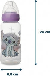 Praktična bočica za dojenčad s motivom Lilo i Stitch zapremine 360 ml dizajnirana je za udobno hranjenje novorođenčadi. Silikonska duda podržava prirodno sisanje, a antikolični sustav smanjuje rizik od nadutosti i nelagode. Bočica je bez BPA i ispunjava strogi standard EN 14350.