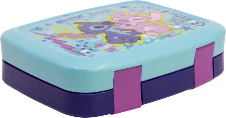 Održavajte užinu pregledno odvojenu i svježu zahvaljujući pametnom rasporedu – 3 gornje pregrade za voće, orašaste plodove ili kekse i 1 prostrana donja pregrada (pladanj) za sendvič ili veći obrok. Preslatki motiv Angel i Stitch razveselit će male i velike obožavatelje.