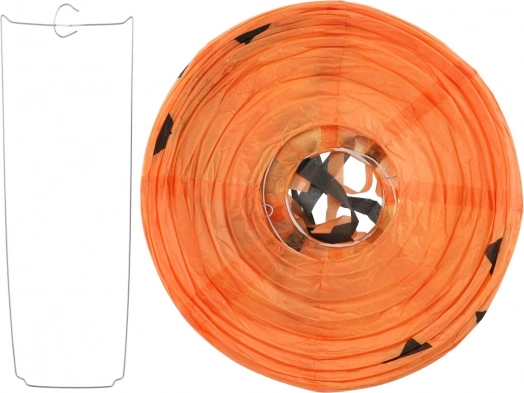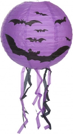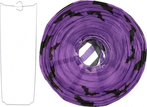 Stvorite jezivo čarobnu atmosferu s okruglim halloween lampionom promjera 30 cm. Lampion je od laganog papira, a zahvaljujući donjim resicama pri vješanju izgleda vrlo efektno. Dostupna su tri izražajna motiva: bundeva (narančasta), šišmiši (ljubičasta) i pauci (bijela).