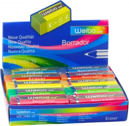 Praktična i stilska gumica WEIBO u živim bojama pouzdano briše tragove obične olovke bez mrlja i bez oštećenja papira. Zahvaljujući dimenzijama 6 × 2 × 1 cm ugodno leži u ruci, dugo traje i zahvaljujući jarkim bojama lako je pronaći u pernici ili na stolu. Fini sintetski materijal bez lateksa, učinkovito brisanje bez razmazivanja i slučajan odabir boje čine je idealnim izborom za školu i ured.