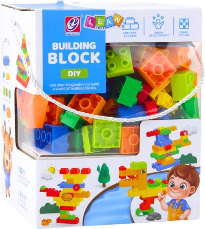 Šareni konstruktorski set od 180 dijelova od sigurne plastike. Veliki dijelovi, zaobljeni rubovi, praktično pakiranje s ručkom. Potiče kreativnost i finu motoriku.