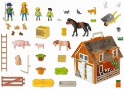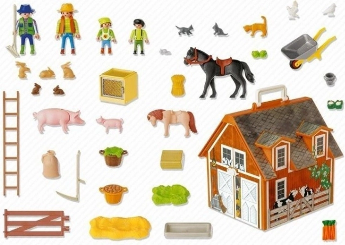 Set Playmobil Prijenosna farma pretvara svaku prostoriju u čarobni svijet sela. Otvorivi kovčežić skriva opremljenu seosku zgradu i mnoštvo životinja – od praščića i konja preko kunića pa sve do preslatkih mačića. Roditelji i djeca brinu se o svim stanovnicima farme i kroz igru uče odgovornosti.