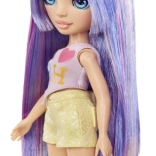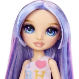 Lutka Violet iz kolekcije Rainbow High dolazi u trendi outfitu s izraženim bojama i dodacima. Zahvaljujući zglobovima na rukama i nogama lako zauzima različite poze te je savršena za igru, fotografiranje i izlaganje na polici. Duga, sjajna kosa u nijansama ljubičaste i lila mami na češljanje i kreiranje novih frizura.