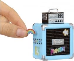 U pakiranju ćeš pronaći sve za trenutnu glazbenu zabavu – dvodijelni modni set, stajliš cipele, mikrofon sa stalkom, mini pojačalo, arak naljepnica za ukrašavanje i češalj za uređivanje kose. Kombiniraj dodatke, stvaraj priče i skupi i ostale članice benda kako bi tvoja scena bila potpuna.