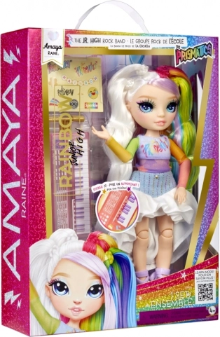 Amaya Raine iz serije Rainbow High Jr. High donosi djeci svijet mode i glazbe u jednoj preslatkoj lutki. Zahvaljujući dugoj kosi u duginim bojama, detaljnoj odjeći i zglobovima spremna je za koncerte, fotografiranje i izlaganje na polici. Dodaci uključuju mini klavijature koje potiču igru zvijezde.