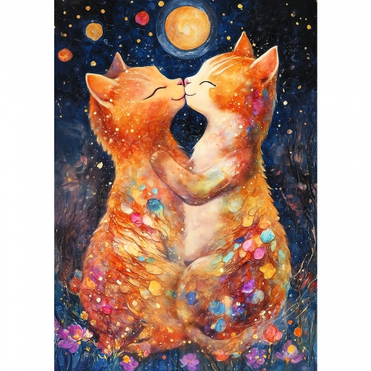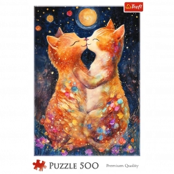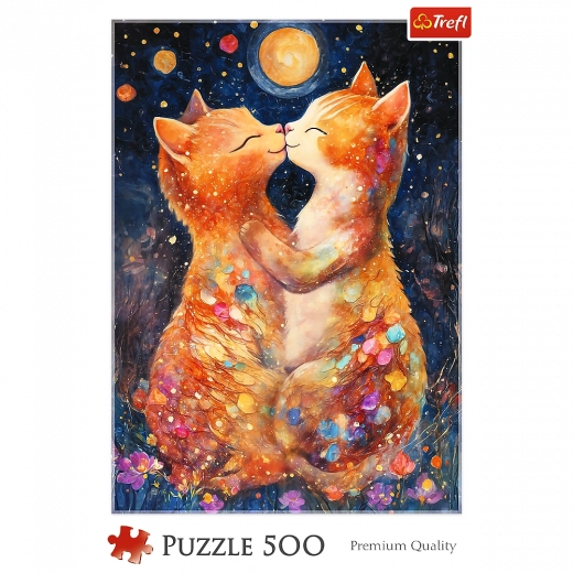 Romantične puzzle s motivom dvaju mačića pri poljupcu na mjesečini nude 500 dijelova i gotovu sliku dimenzija 48 × 34 cm. Proizvedeno u Poljskoj od kvalitetnih materijala s obzirom na okoliš i sa posebnim kalandriranim papirom za manji odsjaj i udobnije slaganje.