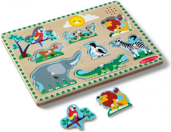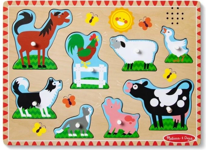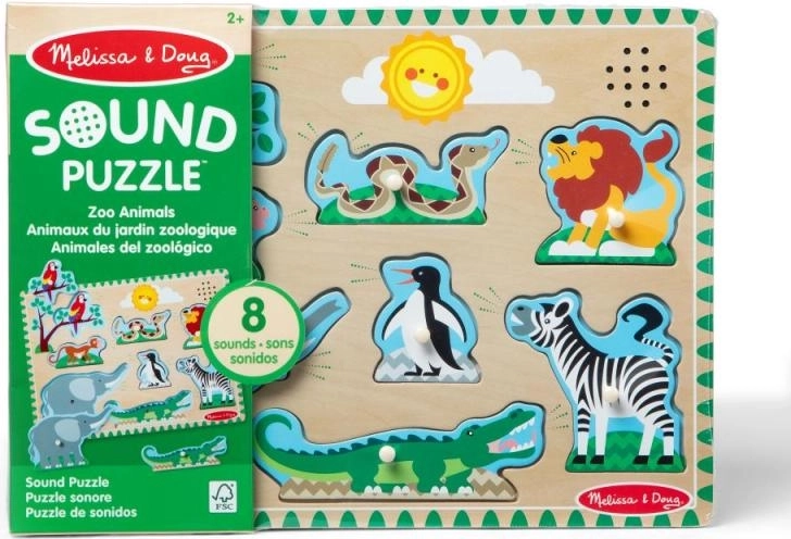 Ove kvalitetne drvene zvučne slagalice donose radost i učenje. Kada se dio postavi na odgovarajuće mjesto, začuje se pripadajući zvuk, primjerice automobila ili životinje, što podupire razumijevanje poveznica i motivira djecu na daljnje istraživanje.