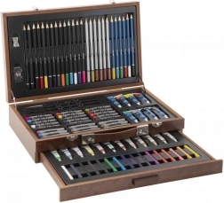 Otkrijte univerzalni likovni set u elegantnom drvenom kovčegu koji nudi sve za crtanje i slikanje. Čvrsta konstrukcija, poklopac na zatvaranje i robusne kopče osiguravaju sigurno spremanje i jednostavno prenošenje. U pakiranju se nalazi širok izbor boja, bojica, kreda i kistova za beskrajne sate stvaranja. Idealno za početnike i napredne.