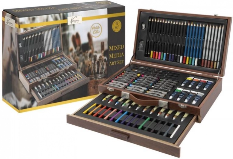 Ovaj veliki kreativni kovčeg izrađen je od kvalitetnog drva s prirodnim izgledom i dugim vijekom trajanja. Zahvaljujući promišljenom rasporedu, imat ćete pregled nad svim priborom i možete stvarati kad god i gdje god poželite. Kovčeg je savršen izbor za djecu, studente i odrasle koji žele razvijati svoju kreativnost i isprobavati razne likovne tehnike.
