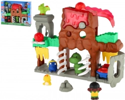 Otvarajuća vrata, rampe i kotrljajuće stijene dodaju akciju igri. Djeca mogu voziti vozilom, skrivati figurice i otkrivati nove scenografije.