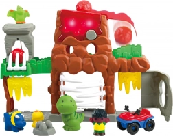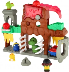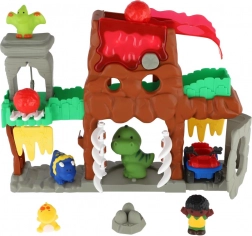 Otkrijte interaktivni svijet dinosaura s vulkanom, tunelima i pokretnim elementima koji potiču kreativnu igru. Djeca mogu puštati kamenje, voziti vozilom, otvarati vrata i smišljati vlastite napete priče sa simpatičnim figuricama.