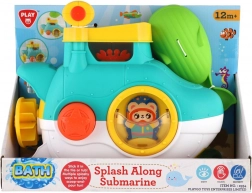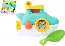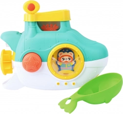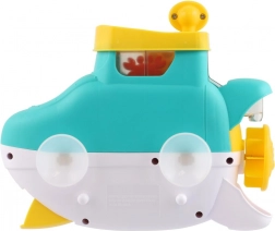 Ova šarena podmornica za kadu donosi djeci zabavu i učenje istovremeno. Pomoću priložene lopatice ulijte vodu u gornji dio i gledajte kako se okreću pokretni dijelovi i voda počinje teći. Praktične vakuumske čašice osiguravaju da podmornica čvrsto stoji na glatkim površinama kade ili pločica.