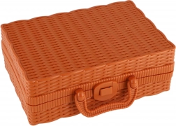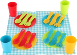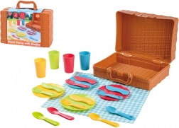 Ovaj dječji piknik set s košem nudi malim kuharima sve što trebaju za savršen piknik. U izdržljivom plastičnom košu nalaze se tanjuri, čaše i setovi pribora za jelo za četiri osobe, te dodatno stilska dekica s kariranim uzorkom. Set je od lagane, lako perive plastike, zbog čega je idealan za svakodnevnu igru.