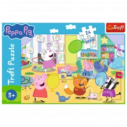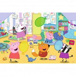 Otkrijte radost slaganja s puzzlama za najmlađe s omiljenom junakinjom Peppa Pig. Ekstra veliki dijelovi olakšavaju rukovanje i potiču razvoj fine motorike, strpljenja te prepoznavanje oblika i boja. Zahvaljujući posebnom kalandriranom papiru koji smanjuje odsjaj, slaganje je ugodnije, a oči se manje zamaraju.