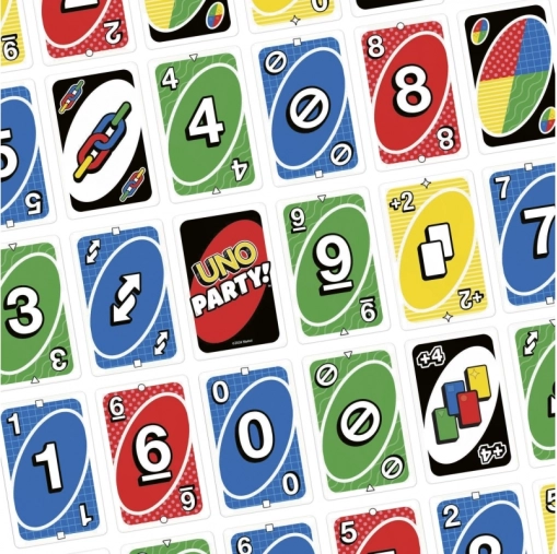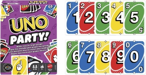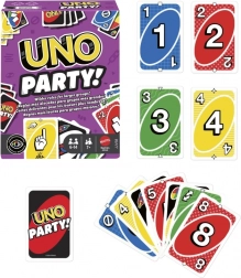 UNO Party donosi provjerenu igrivost omiljene igre UNO u većem i glasnijem pakiranju – idealno za partyje, obiteljska slavlja i večeri s prijateljima. Zahvaljujući 168 kartama (1,5× klasičnog špila) u igri može sudjelovati više igrača, a napetost traje dulje.