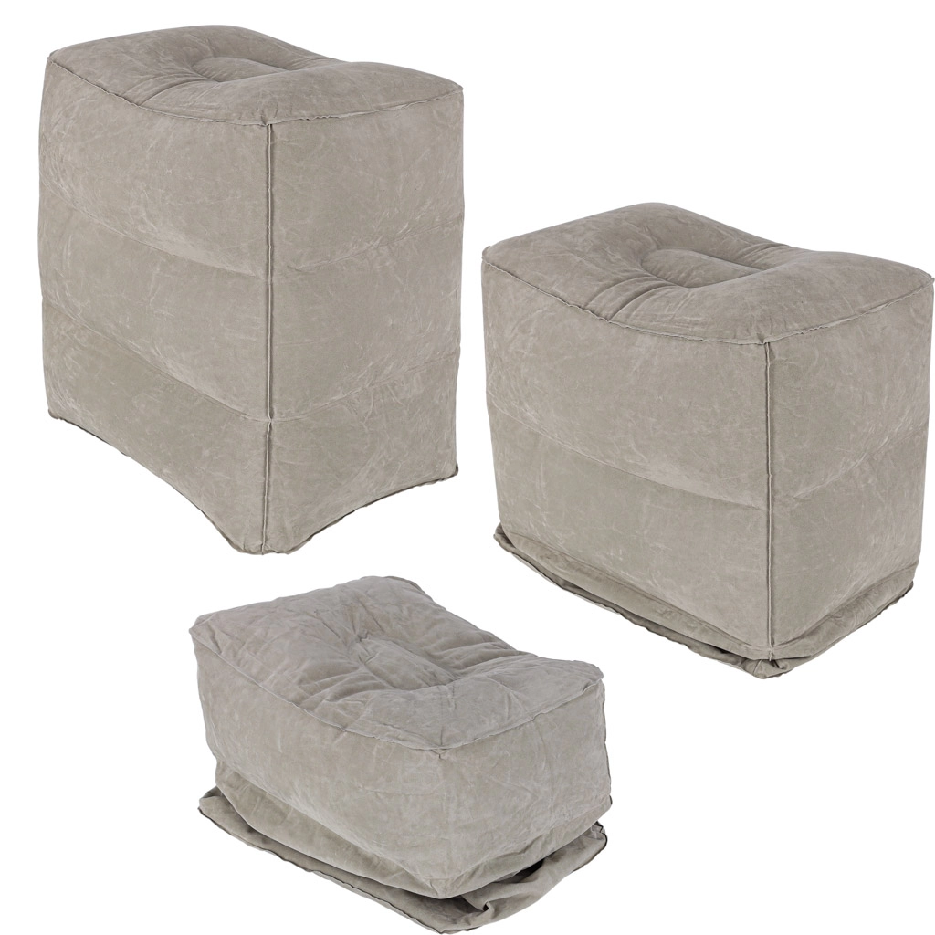 Olakšajte nogama i poboljšajte cirkulaciju uz svestrani nafukivački oslonac koji služi kao puf i putni naslon. Zahvaljujući trima podesivim visinama lako ga prilagodite sjedenju na kauču, u fotelji ili tijekom dugih putovanja.