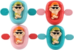 Uljepšajte kupanje zabavnom igračkom koja motivira djecu na dužu igru u vodi. Namotavajuća figurica na ležaljci se nakon namotavanja sama kreće, stvarajući efekt plivanja i prirodno potičući dječju znatiželju i maštu. Zahvaljujući kompaktnim dimenzijama lako stane u svaku kadu i putnu torbu.