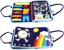 Unutra ćete pronaći aktivnosti poput gumbića, kopči, patentnih zatvarača, čička i vezica, koje pomažu u uvježbavanju praktičnih vještina i samoposluživanja. Zahvaljujući mekoj izvedbi knjiga je sigurna, lagana i prikladna i za putovanja.