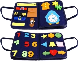 Otkrijte razigranu i edukativnu zabavu sa senzomotoričkom knjigom koja potiče dječje vještine na prirodan način. Zahvaljujući raznolikim aktivnostima poput gumbića, kopči, patenta, čičak-traka i vezica, djeca vježbaju finu motoriku, logičko razmišljanje, koncentraciju i osjetilnu percepciju. Tema vodenog i dinosaurovskog svijeta potiče maštu i znatiželju, dok mekana i lagana izvedba osigurava sigurno i ugodno korištenje kod kuće i na putovanju.