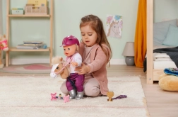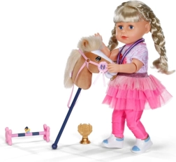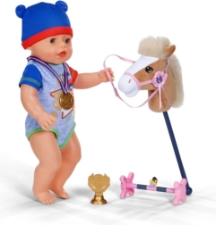 Set BABY born za hobby horsing omogućuje lutkama da uskoče u trend natjecanja s konjićem na štapu. Mekana plišana glava konjića sigurna je i ugodna na dodir, pa je izvrsna za svakodnevne vožnje i natjecateljske discipline. Zabavan trening osigurava omiljena patkica Berta, koja igri daje razigran karakter.