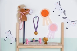 Dio seta su i medalja te pobjednički pehar, koji će potaknuti djecu na daljnje uspjehe i podržati njihovu maštu. Set je kompatibilan s BABY born lutkama veličine 36 i 43 cm, pa će se lako uklopiti u postojeću opremu.