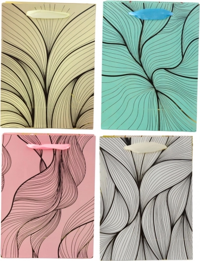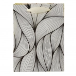 Ova poklon-vrećica oduševljava modernim dizajnom i luksuznim zlatnim linijama koje na obojenoj podlozi stvaraju suptilan valoviti efekt. Zahvaljujući čvrstoj izradi pogodna je i za teže poklone, a njezine dimenzije savršeno odgovaraju srednje velikim predmetima.