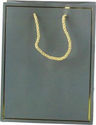 Ova poklon-vrećica ističe se minimalističkim, ali upečatljivim izgledom s profinjenim zlatnim obrubom duž rubova. Izrađena je od kvalitetnog papira koji osigurava trajnost i pouzdanost čak i pri nošenju težih darova. Zahvaljujući klasičnom obliku i univerzalnim bojama pogodna je i za žene i za muškarce te za sve vrste poklona – za rođendane, imendane, jubileje i poslovne događaje.