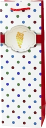 Zahvaljujući dimenzijama 35 × 12 × 9 cm vrećica je savršeno prilagođena bocama i drugim visokim poklonima. Dostupna je u miksu uzoraka (bijela i crna s raznobojnim točkicama) s motivom boce i čaše ili grozda. Prodaje se pojedinačno; motiv se bira nasumično.
