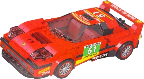 Svi dijelovi izrađeni su od izdržljive ABS plastike, koja dobro drži oblik i čvrsto prianja. Gotov model auta ističe se sportskim detaljima karoserije i energičnom crvenom. Set je pakiran u poklon kutiju i sadrži korak‑po‑korak upute, pa je prikladan i za početnike graditelje.