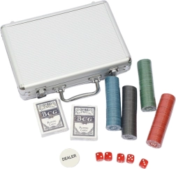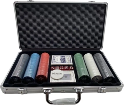 Kompletan poker set od 500 dijelova za kućne turnire i društvene večeri. Kvalitetni žetoni 11,5 g promjera 40 mm, 2 špila karata i 5 kockica u čvrstom aluminijskom koferu za praktično spremanje i prenošenje – dojam kao u pravom kasinu.