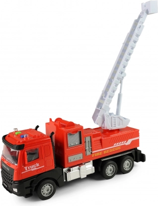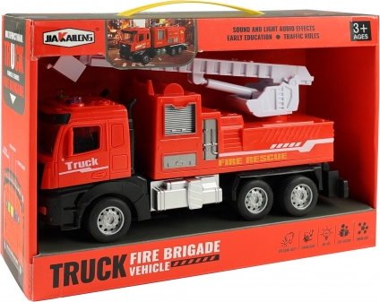 Vatrogasno vozilo na inerciju, duljine 25 cm, sa svjetlom i zvukom. Baterije 3× AG13 u pakiranju. Sjajna igračka za realističnu spasilačku akciju.