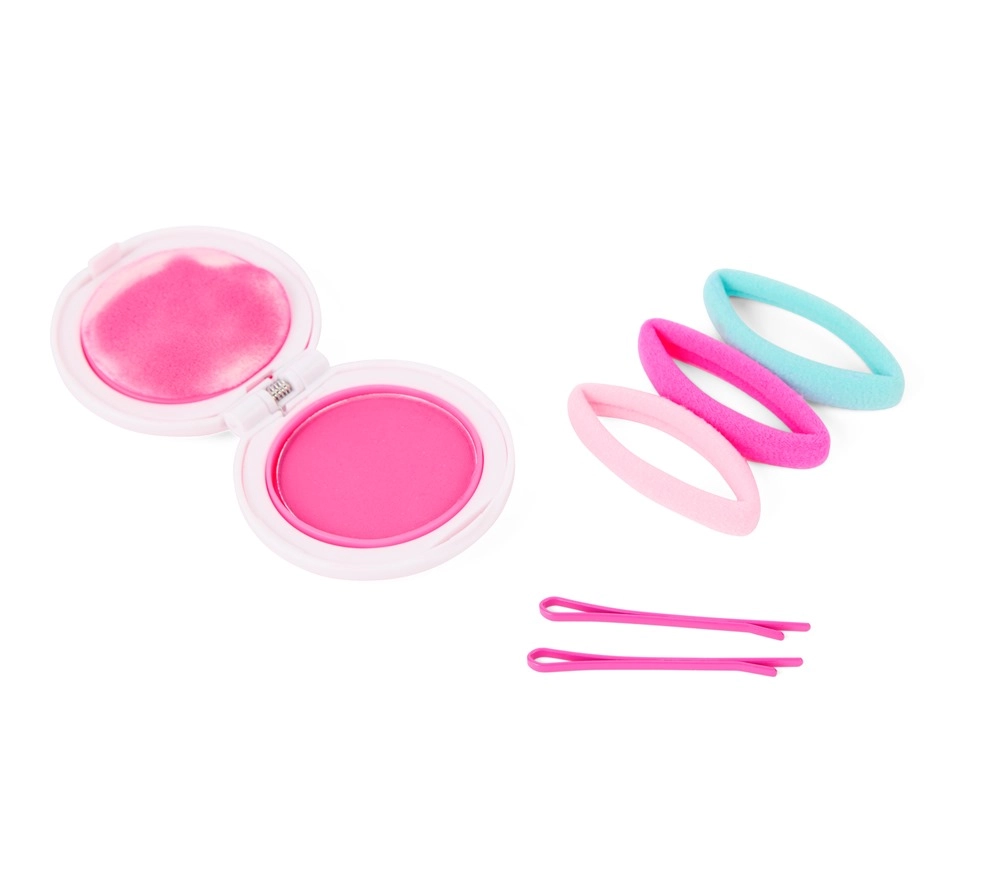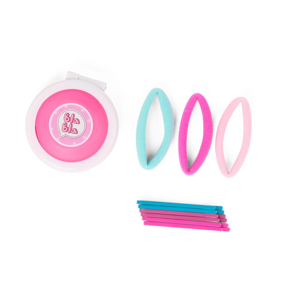 Dio pakiranja su i praktični dodaci za kosu zahvaljujući kojima djeca mogu složiti mnoštvo razigranih stilova. Potiče kreativnost, finu motoriku i samoprezentaciju – idealno za proslave, fotografiranja i svakodnevno nošenje.