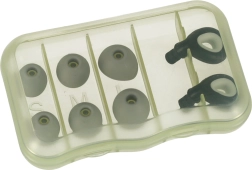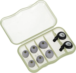 - 1× par čepića (lijevi i desni), 6× silikonski nastavci (S, M, L), 1× kutijica, upute za uporabu